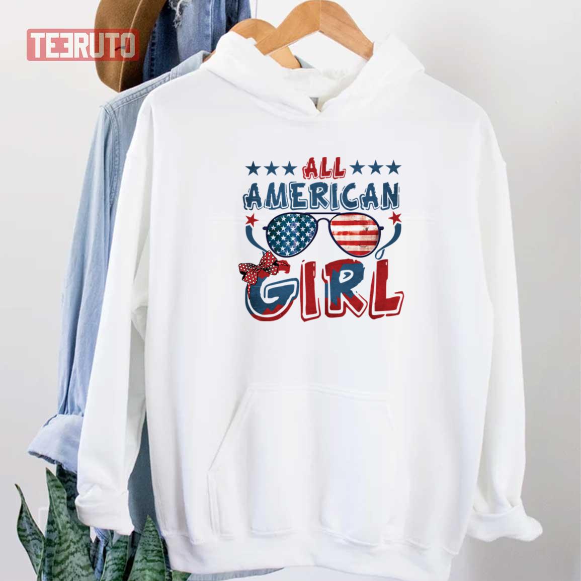 Product All American Girls Messy Bun With Sunglass USA Flag Unisex T-Shirt will shipped within 1 to 3 days after payment received.