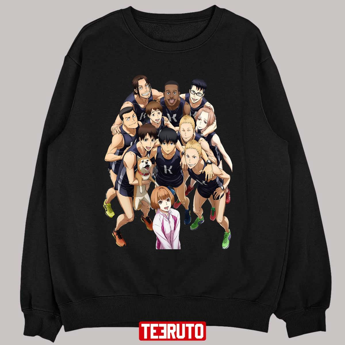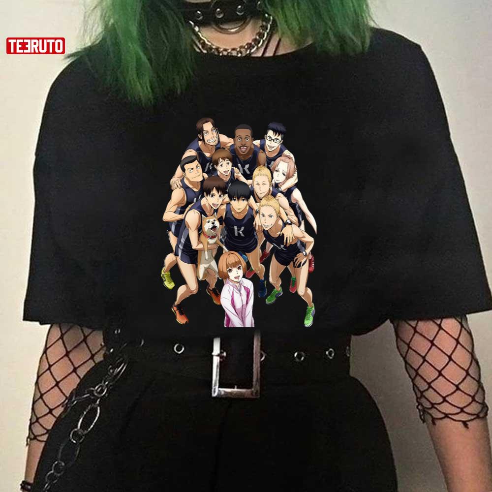 Product detail for All Characters Of Kaze Ga Tsuyoku Fuiteiru Run WIth The Wind Anime Artwork Unisex T-Shirt: