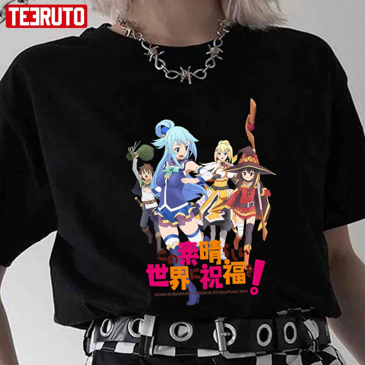 Product Anime Kono Subarashii Sekai Ni Shukufuku Wo Characters Unisex T-shirt will shipped within 1 to 3 days after payment received.