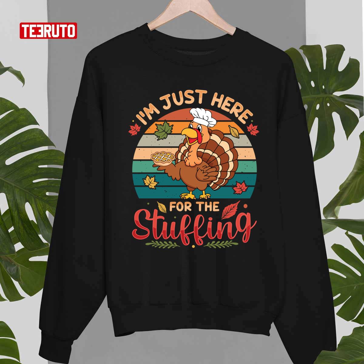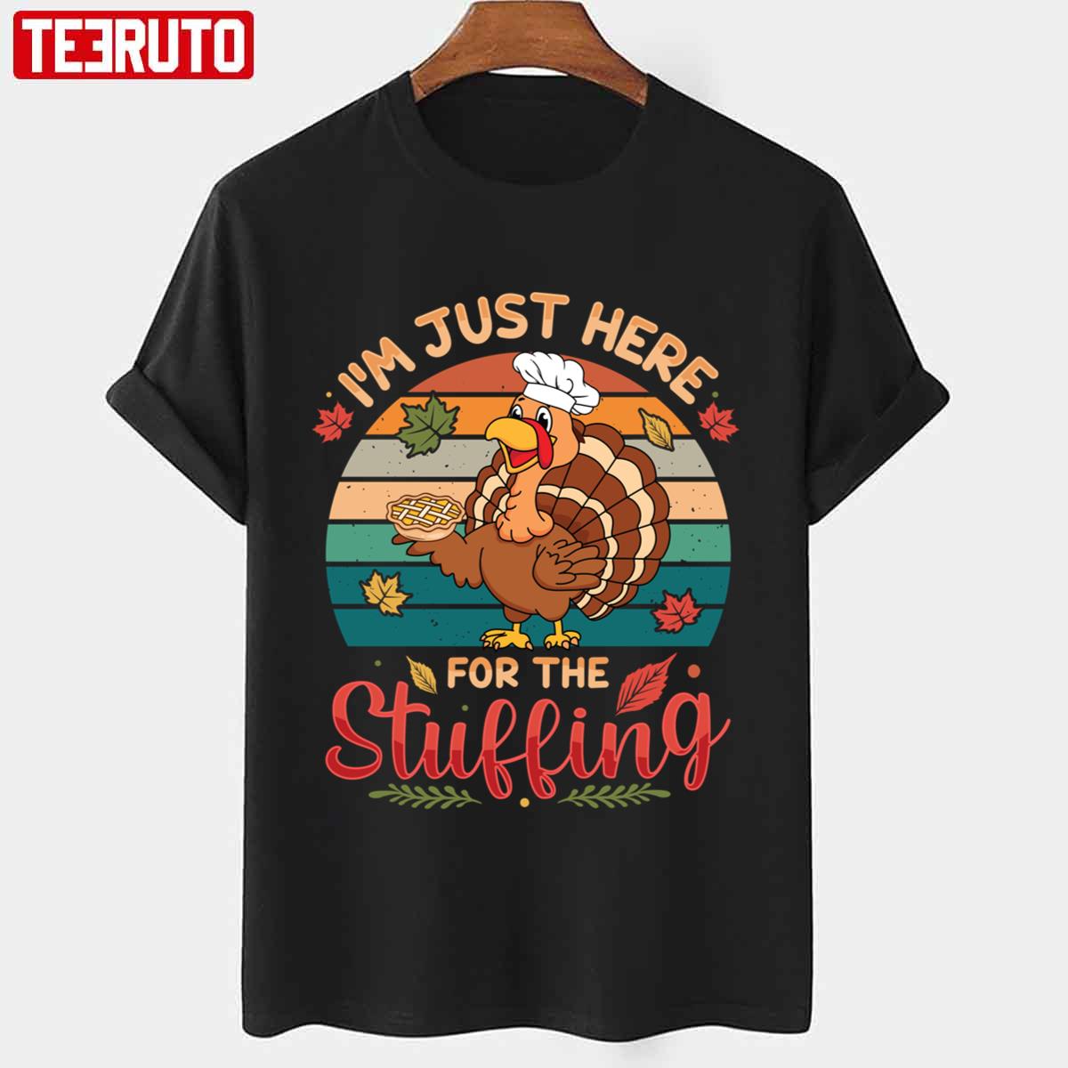 Autumn Fall I’m Just Here For The Stuffing Turkey Thanksgiving Day Vintage Graphic Unisex T-shirt