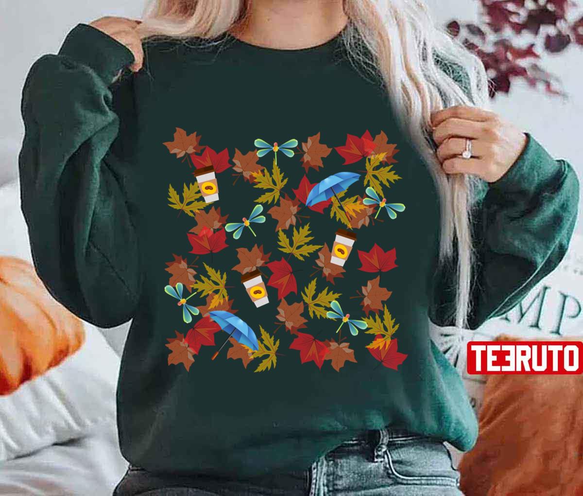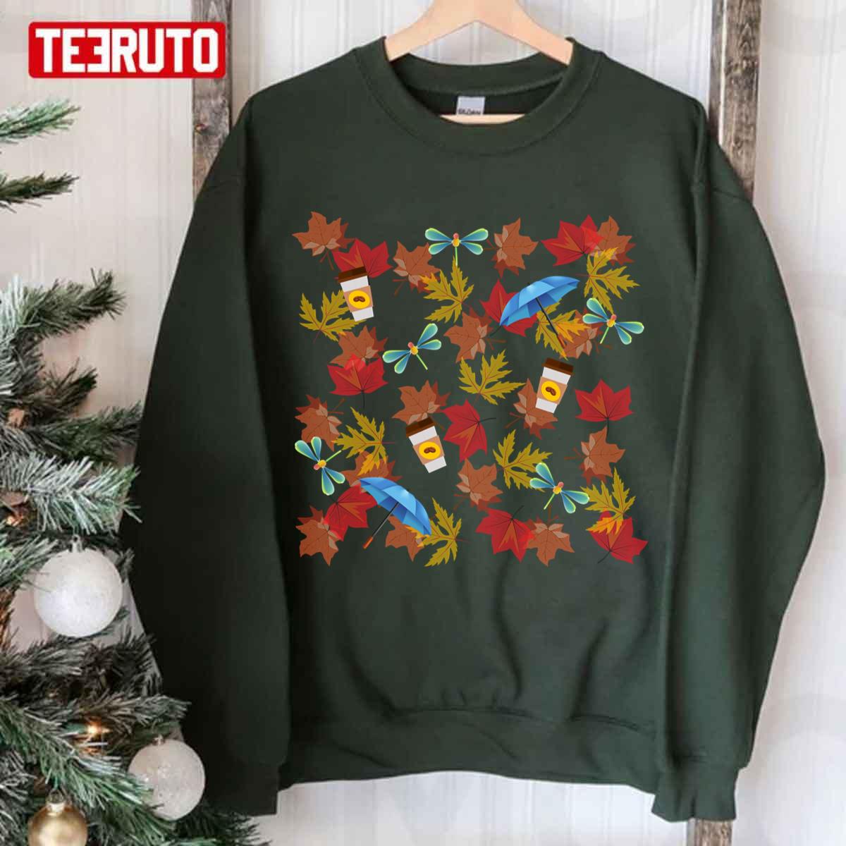 Autumn Leaves Umbrellas Coffee Cups Fireflies Gilmore Pattern Gilmore Girls Unisex Sweatshirt