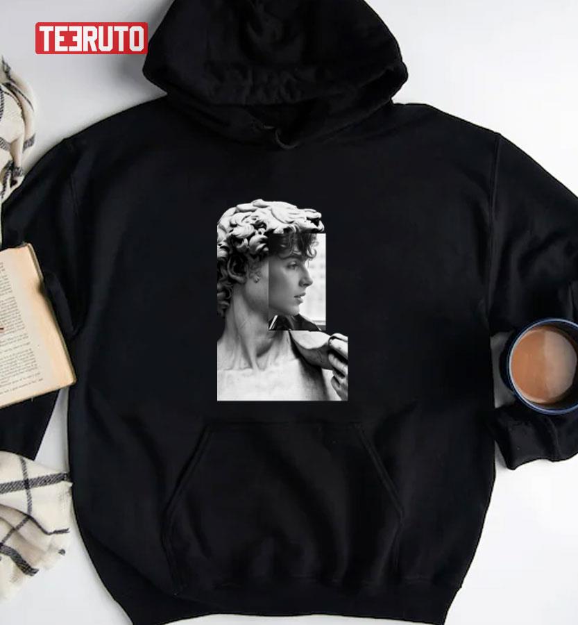 Blach And White Statut Of David Saint Timothee Chalamet Unisex T-shirt Care Instructions