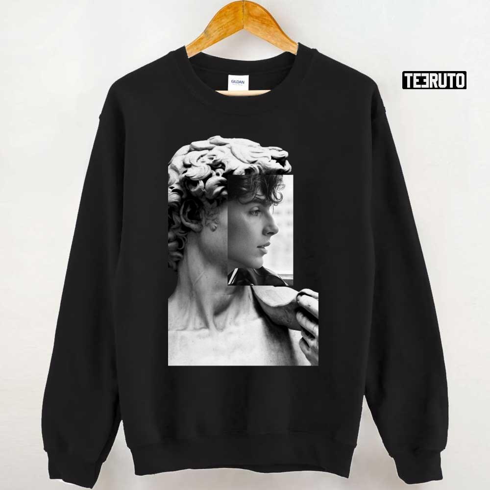 Product detail for Blach And White Statut Of David Saint Timothee Chalamet Unisex T-shirt: