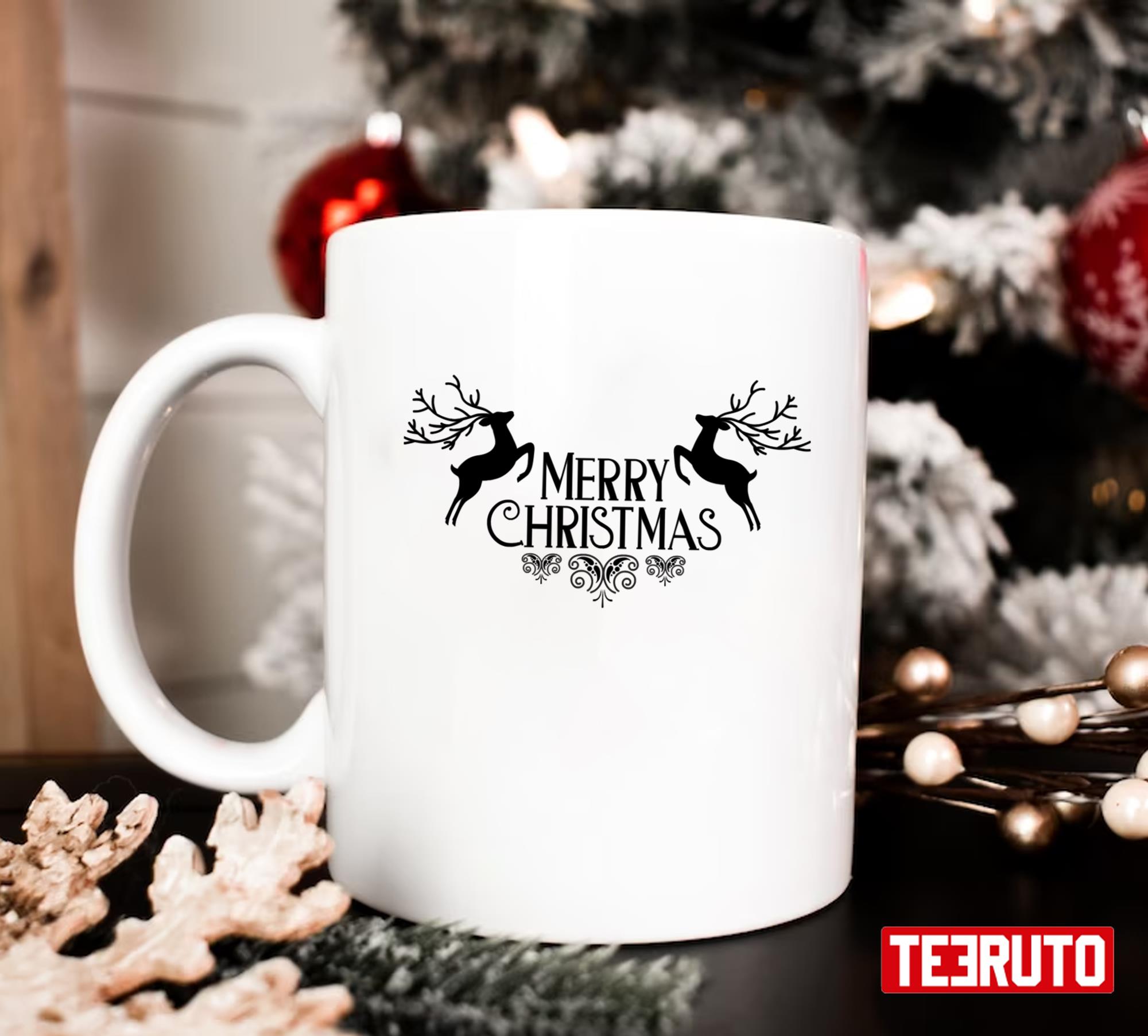 ABOUT OUR MUGS ON THIS PRODUCT: Black Art Reindeers Merry Christmas 11 oz Ceramic