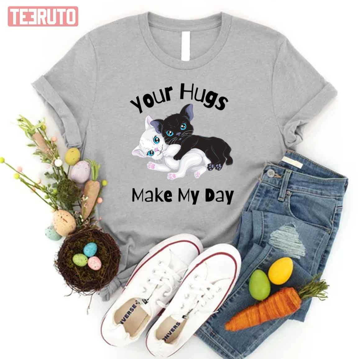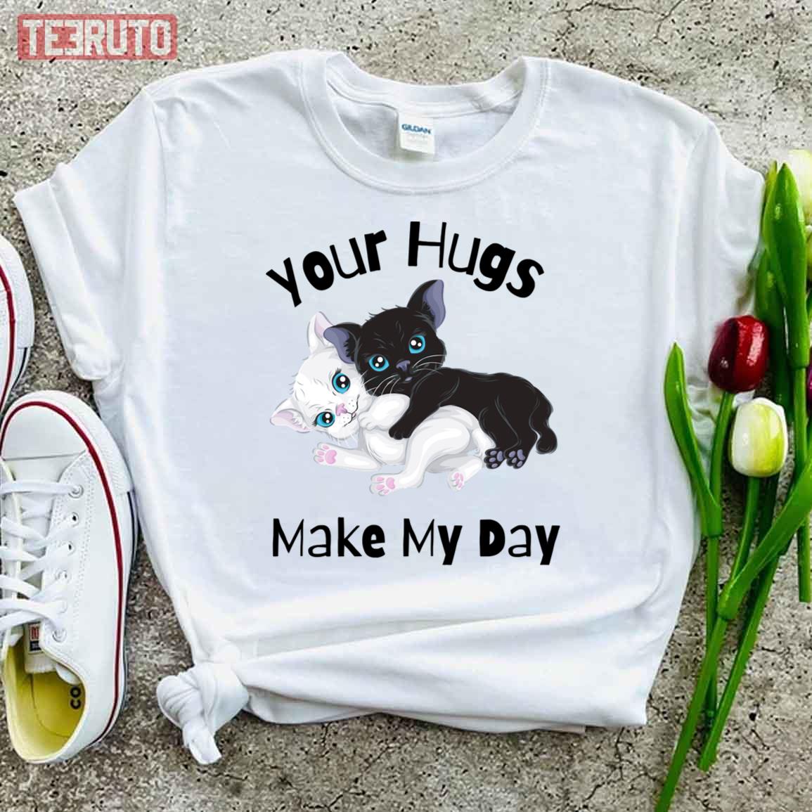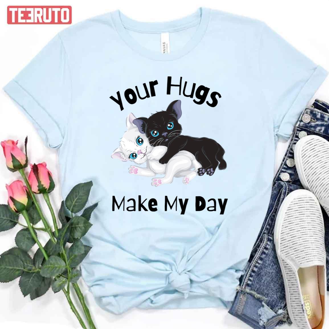 Black Cat White Cat Hug Me To Make My Day Unisex T-Shirt