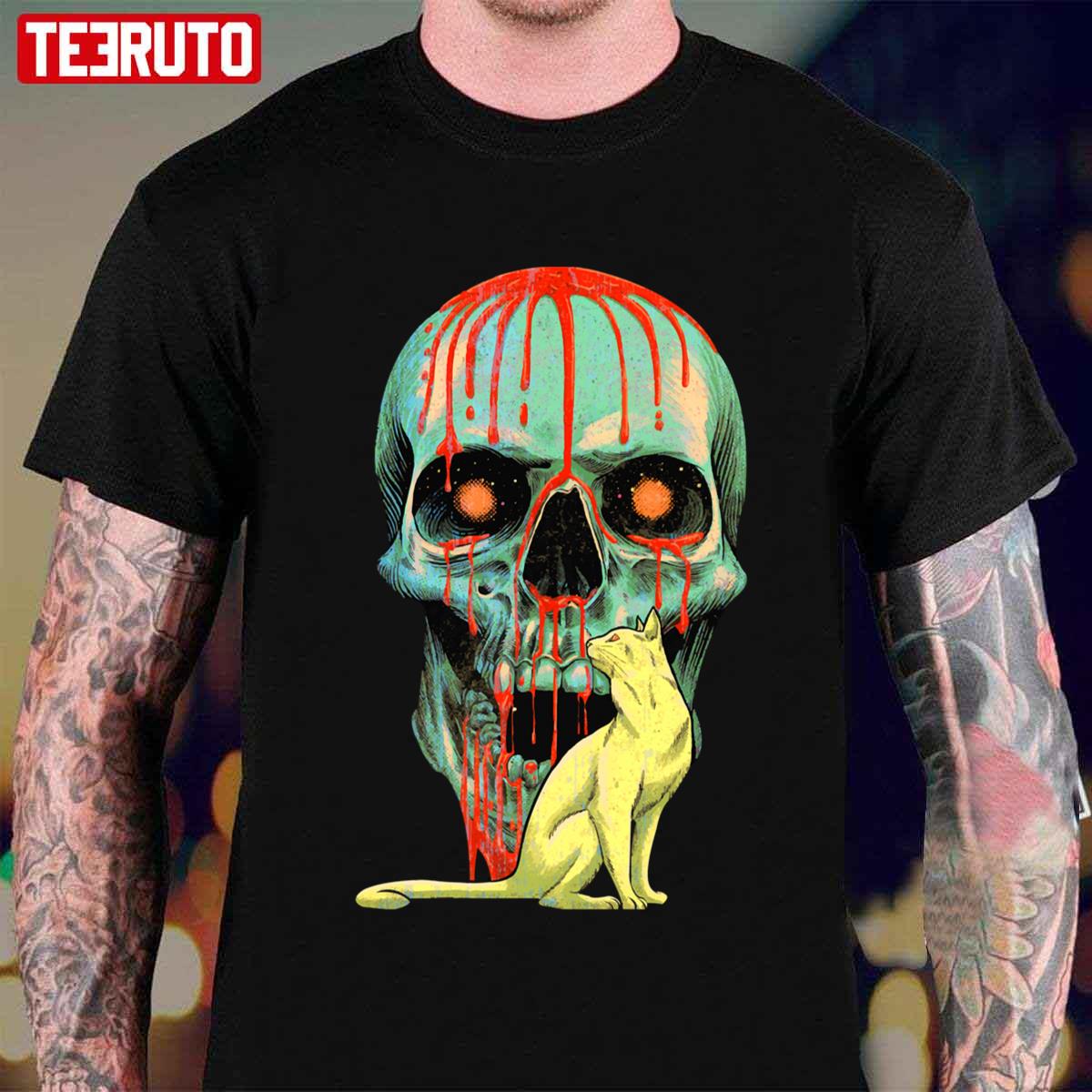 Product detail for Bloody Skull With A Cat Unisex T-Shirt: