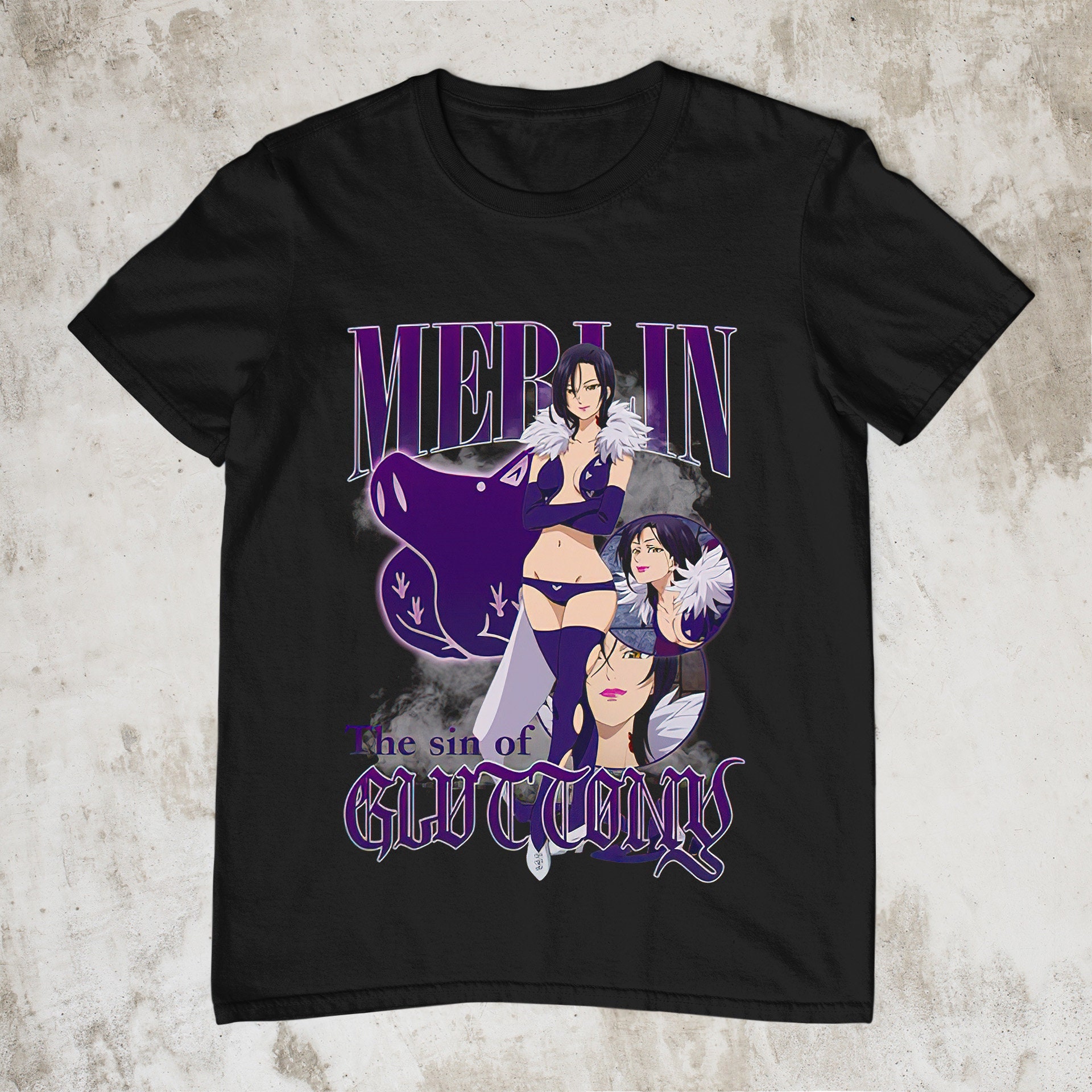 Product Boar's Sin Of Gluttony Merlin Homage Anime The Seven Deadly Sins Nanatsu No Taizai Anime Anime Vintage 90s Unisex T-Shirt will shipped within 1 to 3 days after payment received.