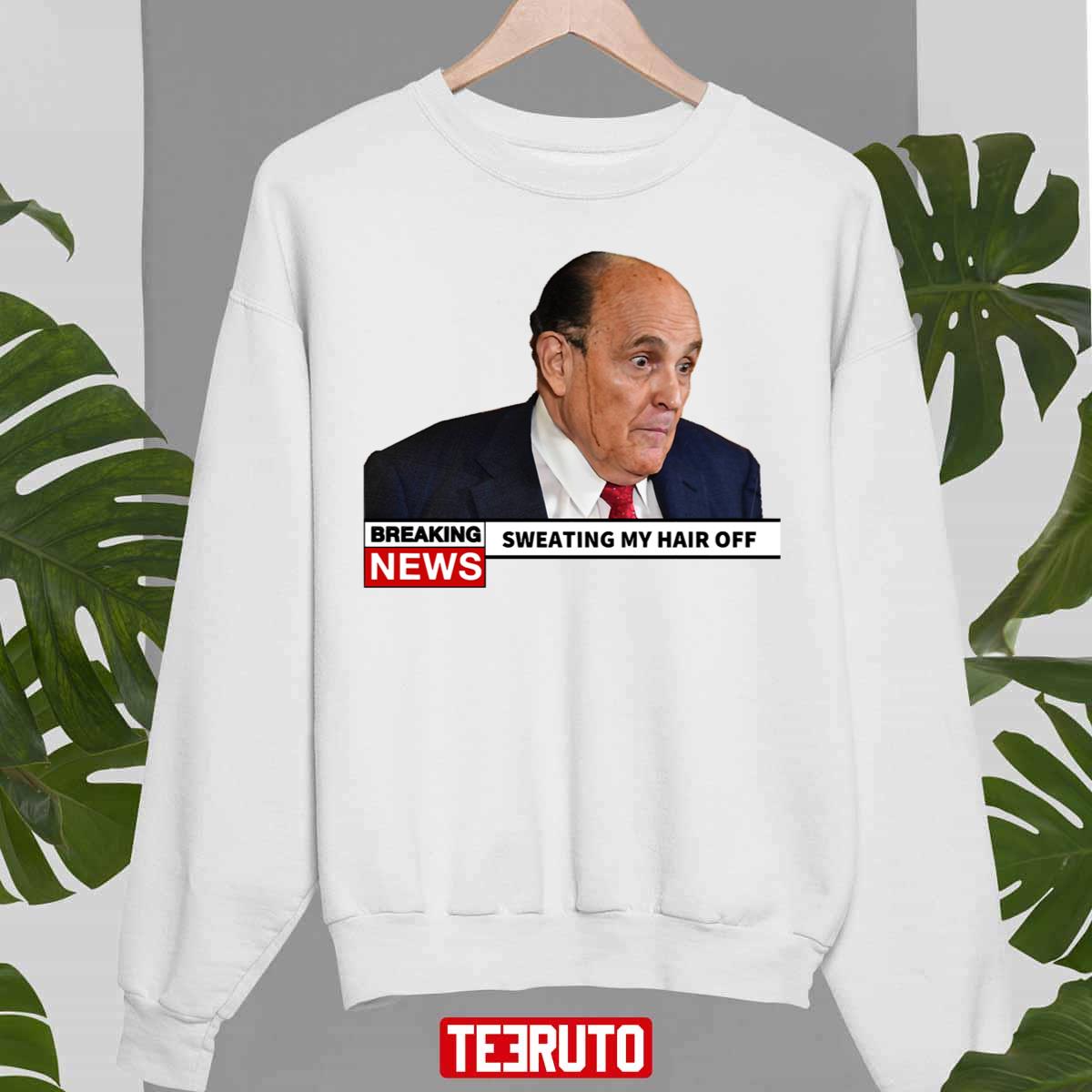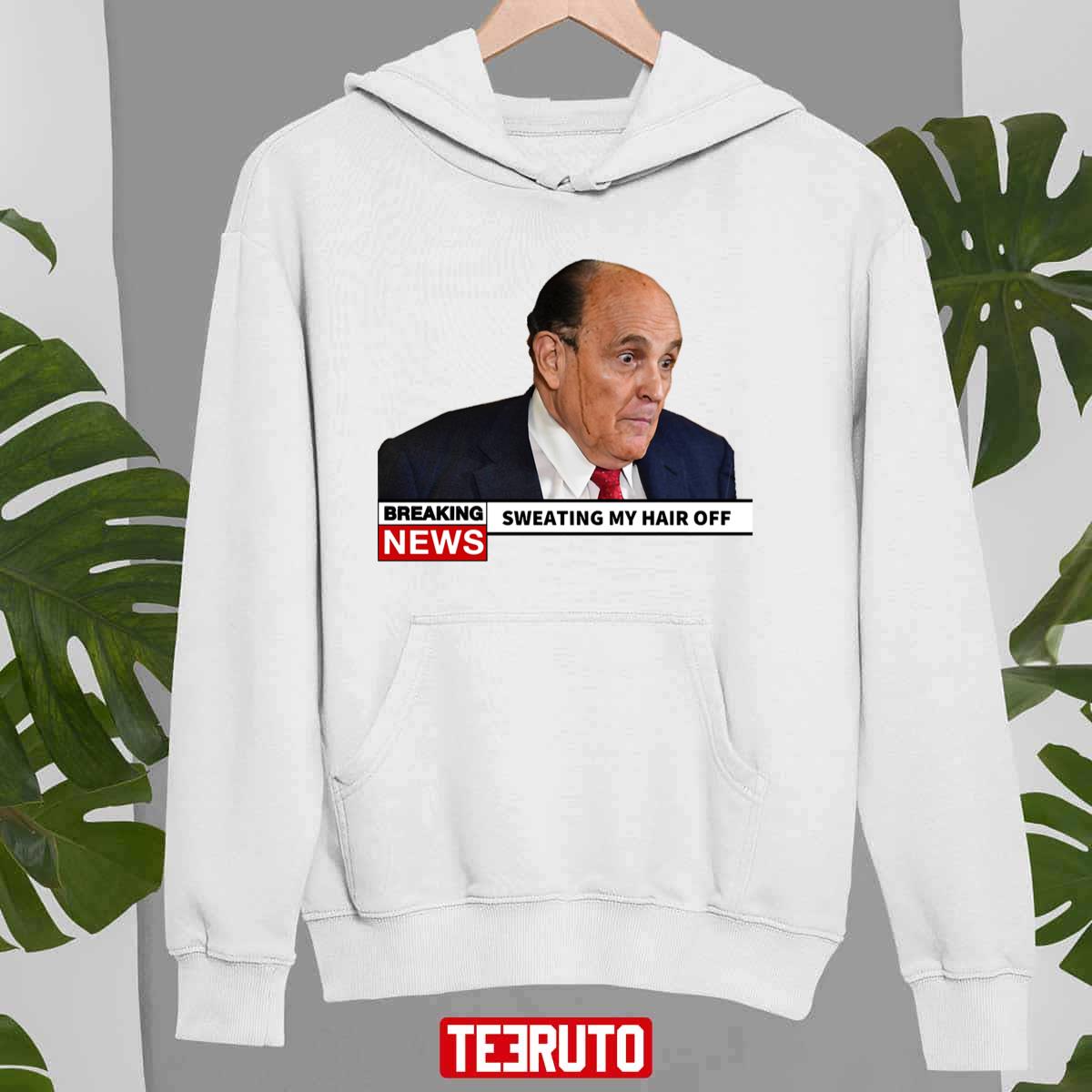 Product Breaking News Rudy Giuliani Sweating My Hair Off Unisex T-Shirt will shipped within 1 to 3 days after payment received.