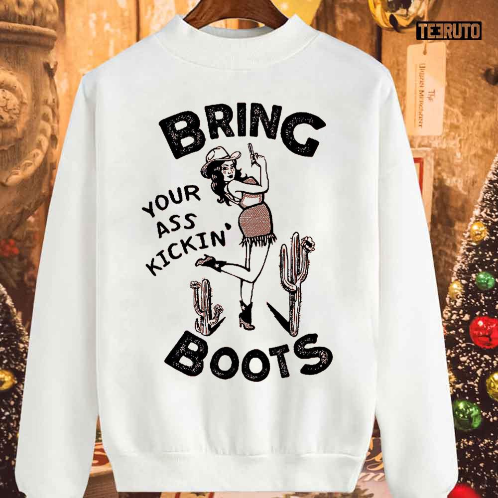 Product detail for Bring Your Ass Kickin' Boots Christmas Unisex Sweatshirt: