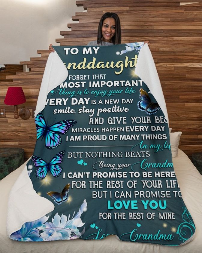Blanket product: Butterfly To My Granddaughter Never Forget Fleece Blanket Quilt Blanket For Granddaughter , related’s themes is .
