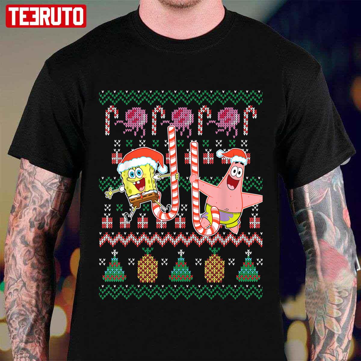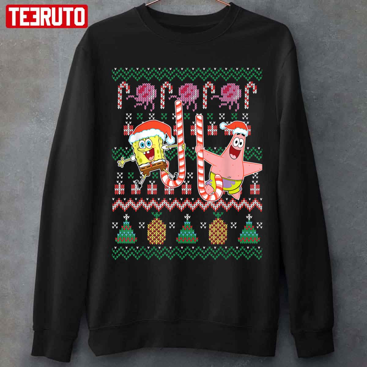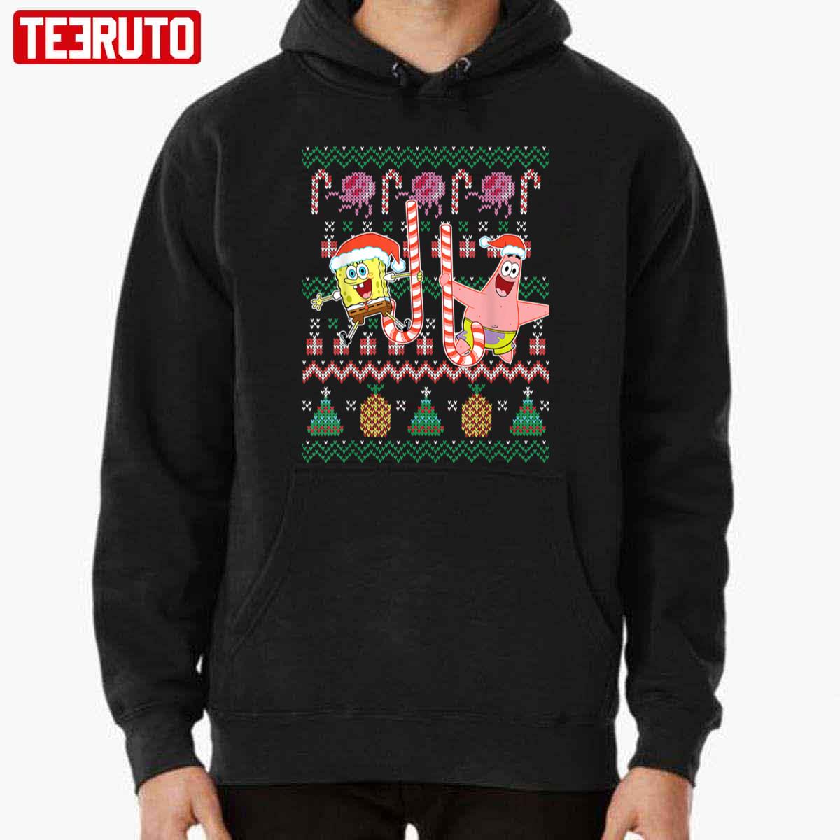 Candy Cane Spongebob And Patrick Star Ugly Xmas Unisex Hoodie