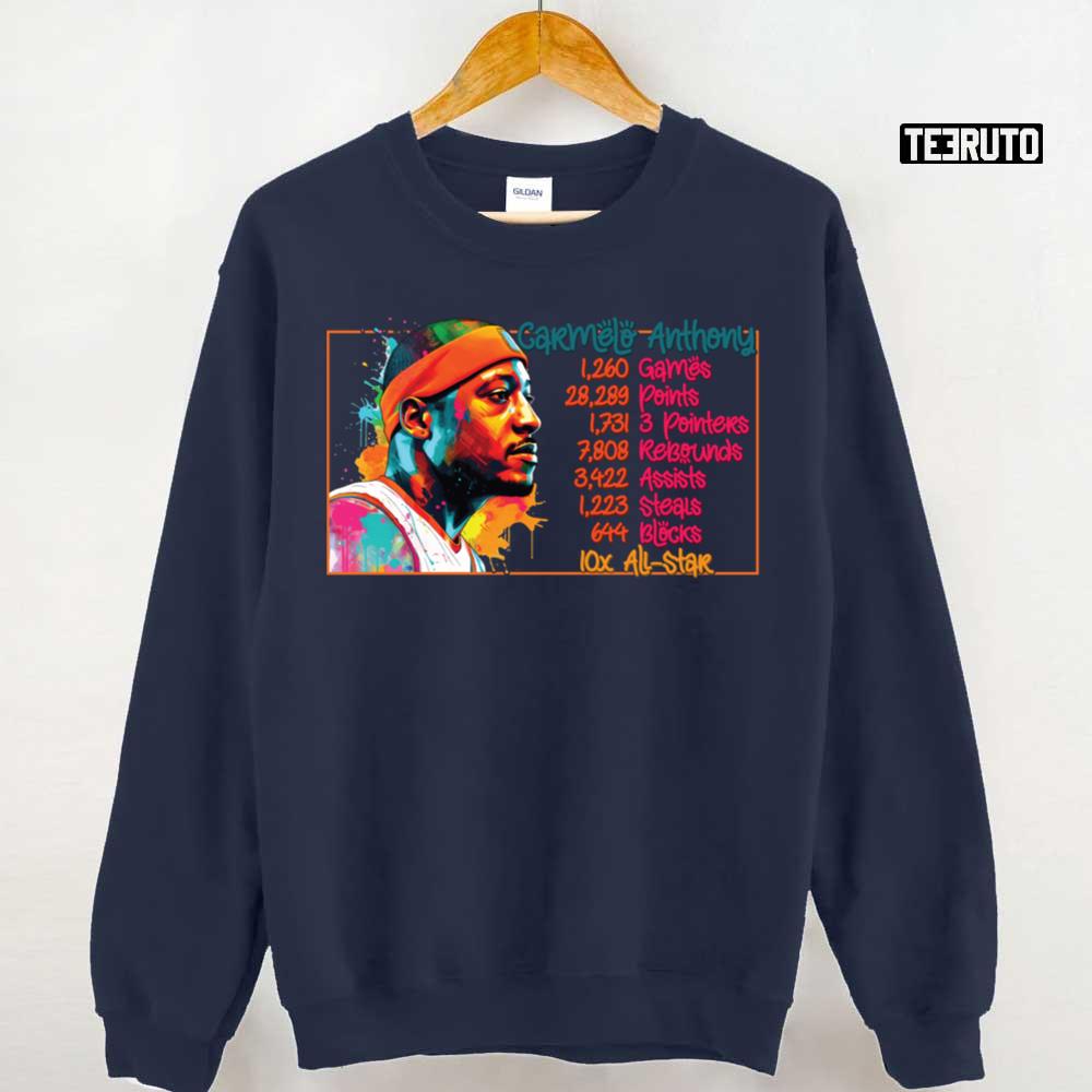 Product Career Stats Carmelo Anthony Unisex T-Shirt will shipped within 1 to 3 days after payment received.