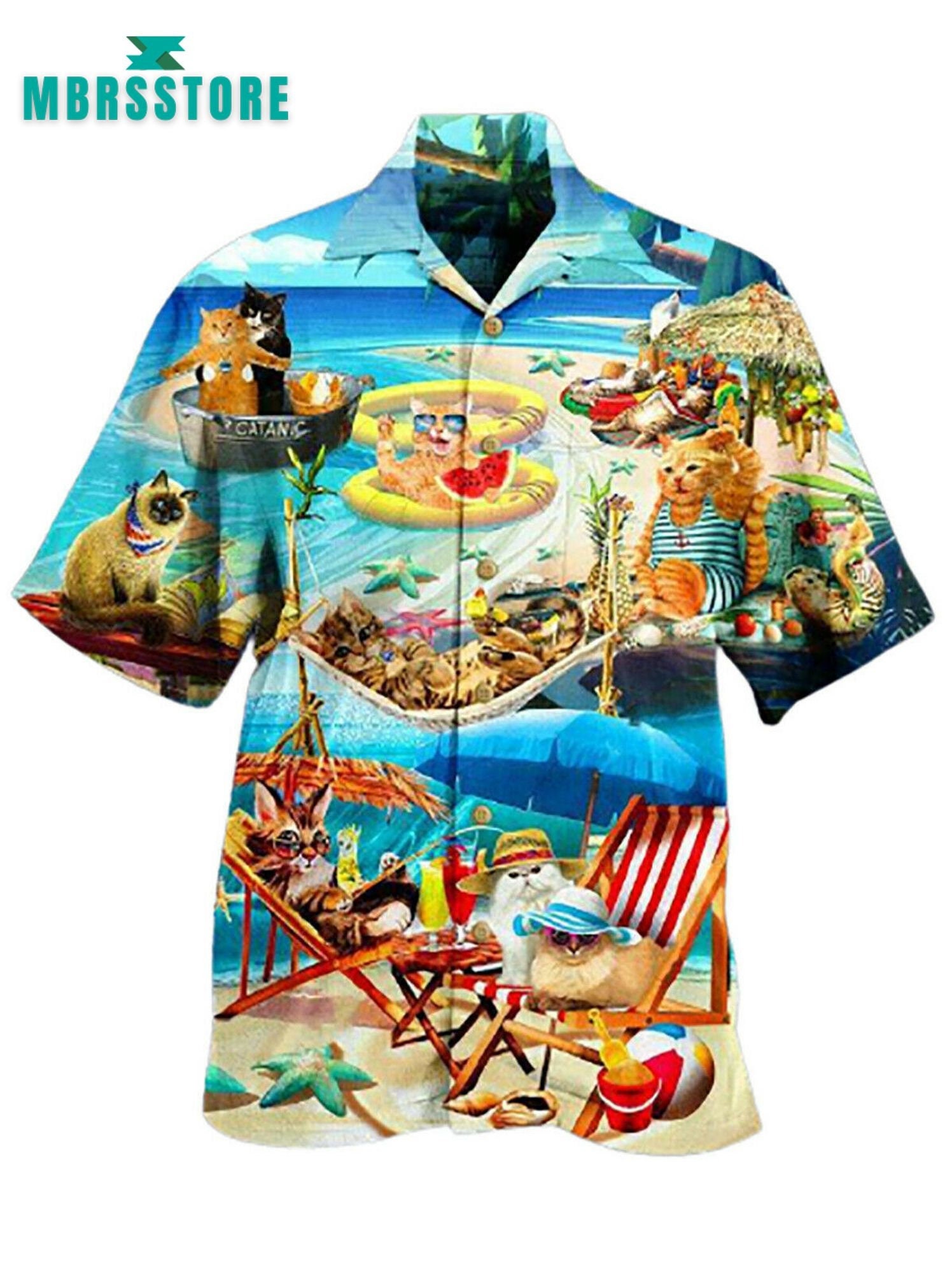Product detail for Cat Soft Beach For Cat Lover Vintage Button Down Hawaiian Shirt: