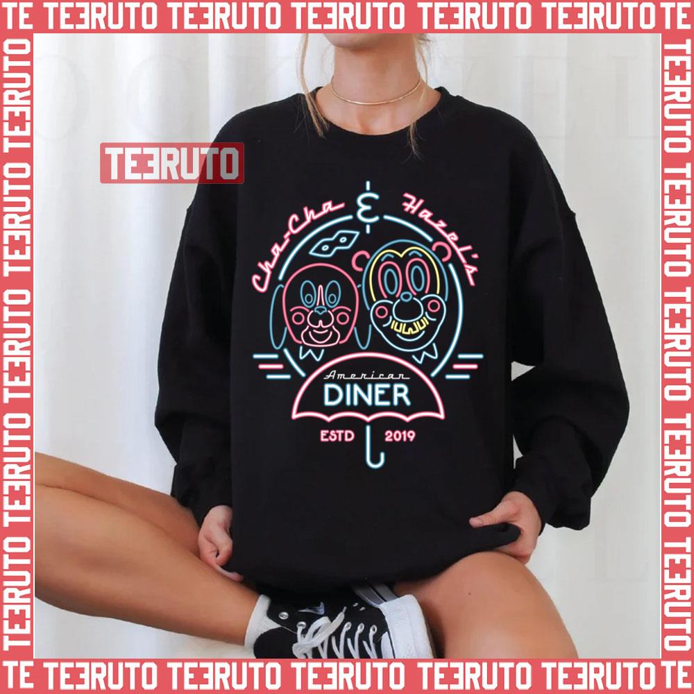 Product Cha Cha & Hazel Diner Neon Umbrella Sign Unisex T-Shirt will shipped within 1 to 3 days after payment received.