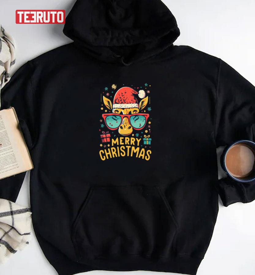 Product detail for Cheerful Christmas Giraffe With Glasses Merry Christmas Unisex Sweatshirt:
