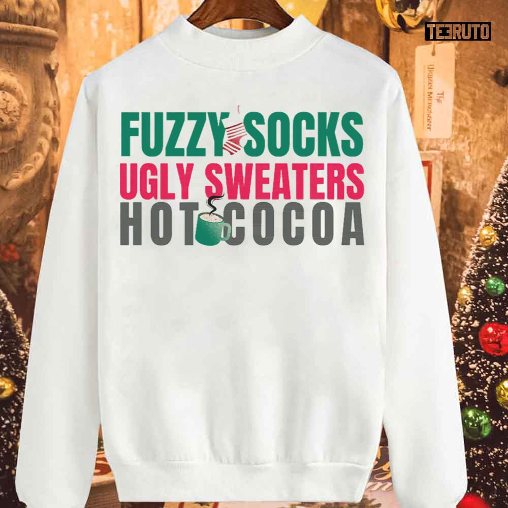Product detail for Christmas Themed Fuzzy Socks Hot Cocoa Unisex Sweatshirt: