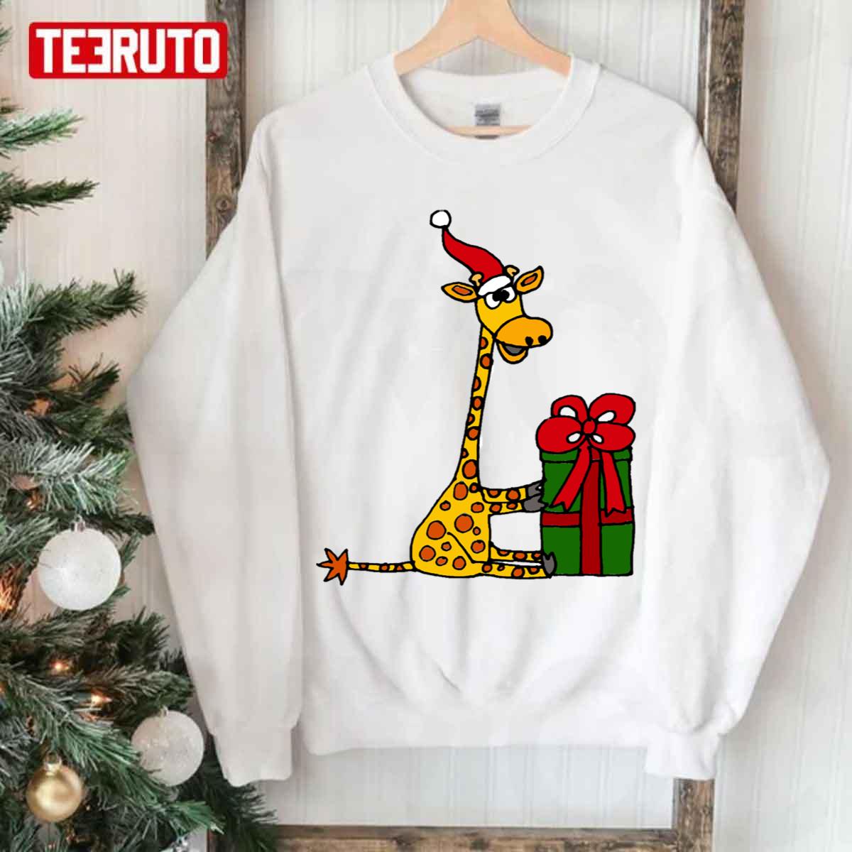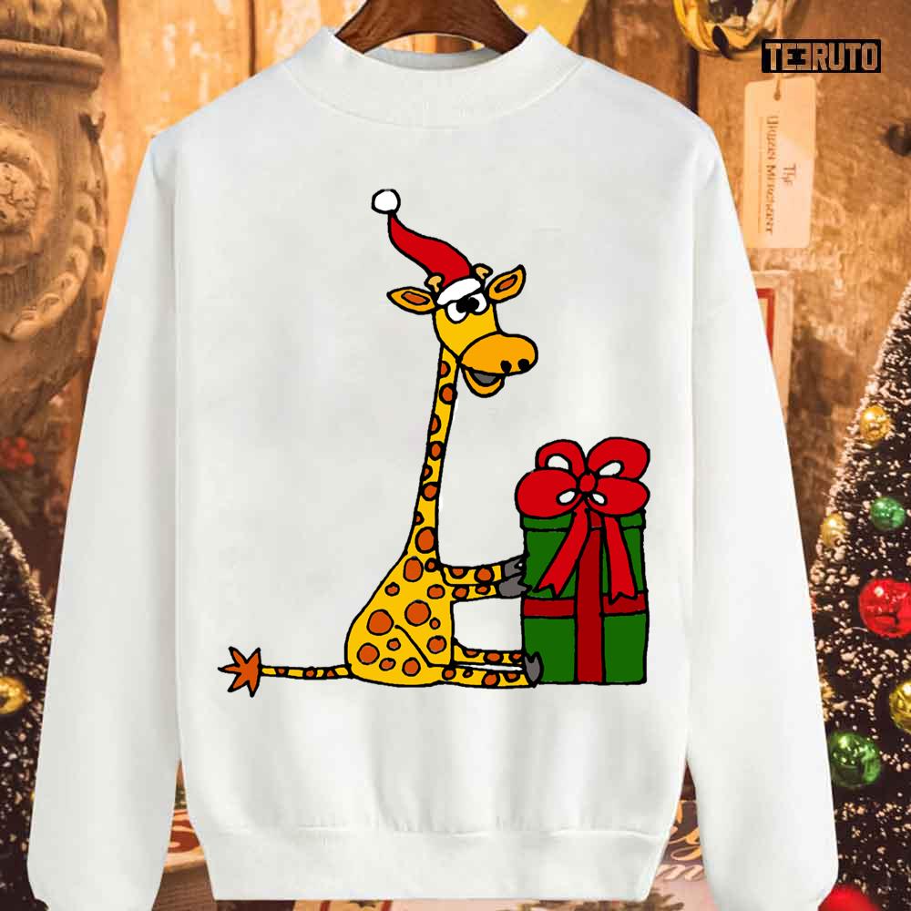 Product detail for Cool Funny Giraffe Opening Christmas Package Unisex Sweatshirt:
