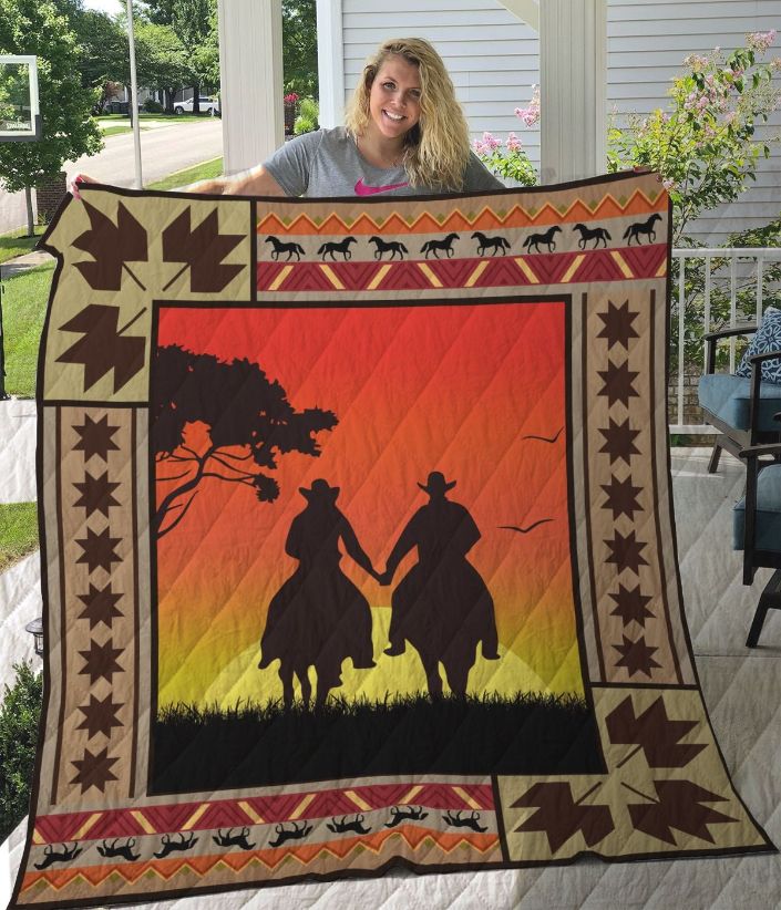 Blanket product: Cowboy Couple At Dawn Horse Perfect Gifts For Horse Lover Quilt Blanket , related’s themes is .