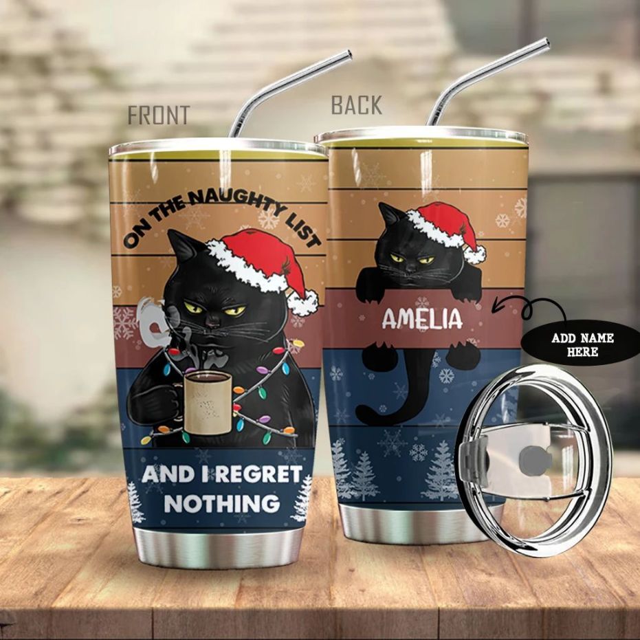 Tumbler product: Custom Name Black Cat Christmas On The Naughty List Coffee Tumbler , related’s themes is .