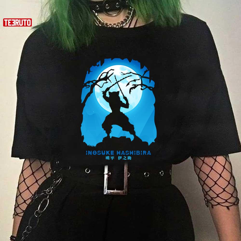 Product detail for Demon Slayer Inosuke Hashibira Japanese Typo Artwork Unisex T-Shirt: