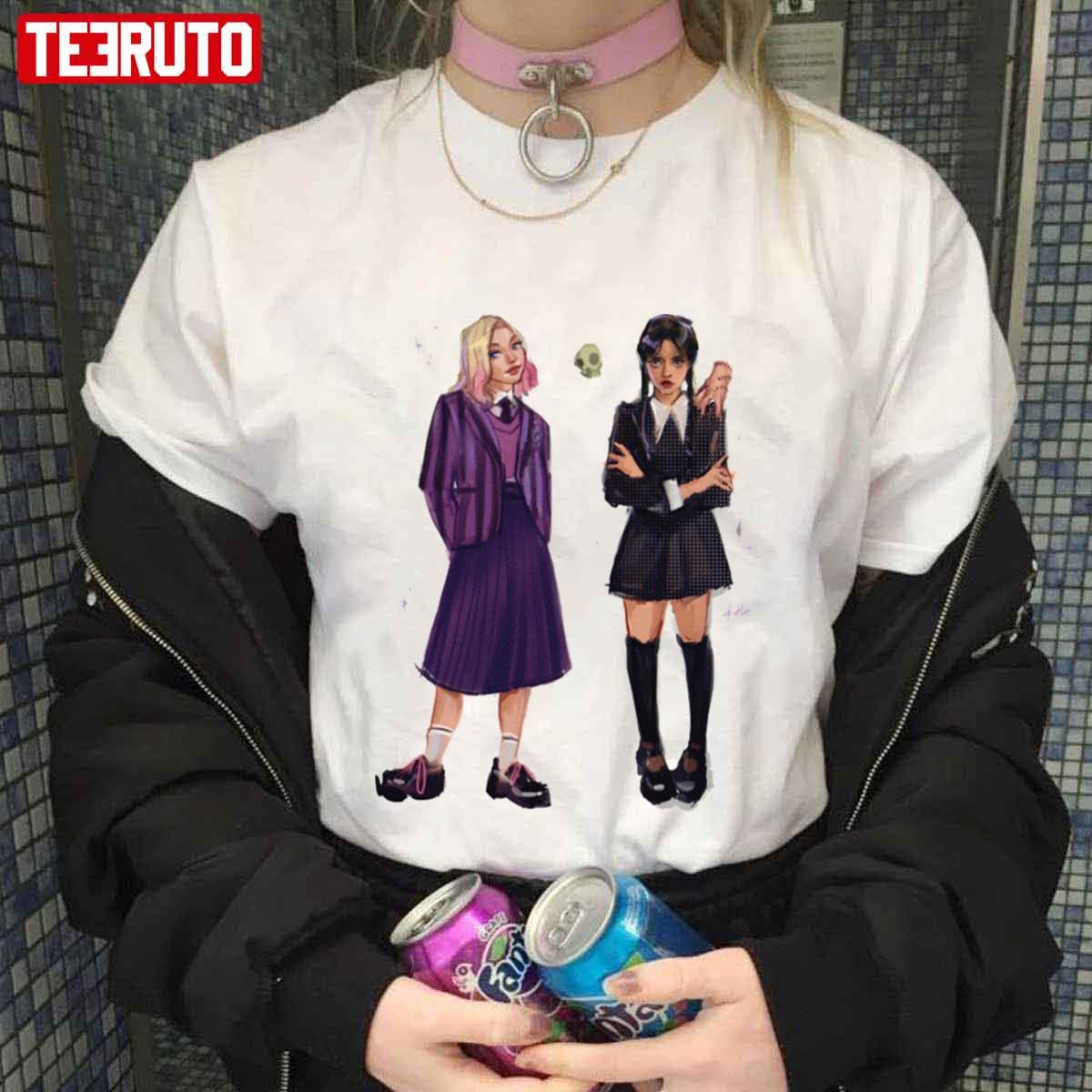 Product Fanart Thing Wednesday And Enid Main Characters Netflix Tv Show Unisex T-Shirt will shipped within 1 to 3 days after payment received.