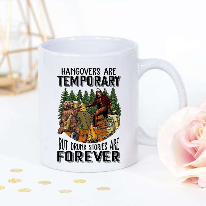 ABOUT OUR MUGS ON THIS PRODUCT: Hangovers Are Temporary But Drunk Are Forever Bigfoot And Bear Camping Friend Premium Sublime Ceramic Coffee Mug White