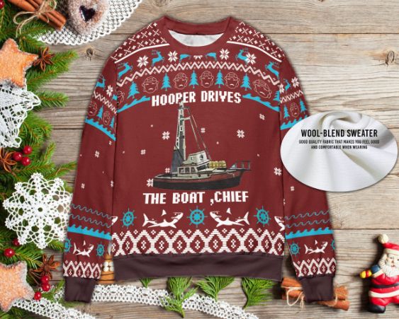 Hooper Drives The Boat Chief 2022 Christmas Ugly Wool Knitted Xmas Matching Sweater