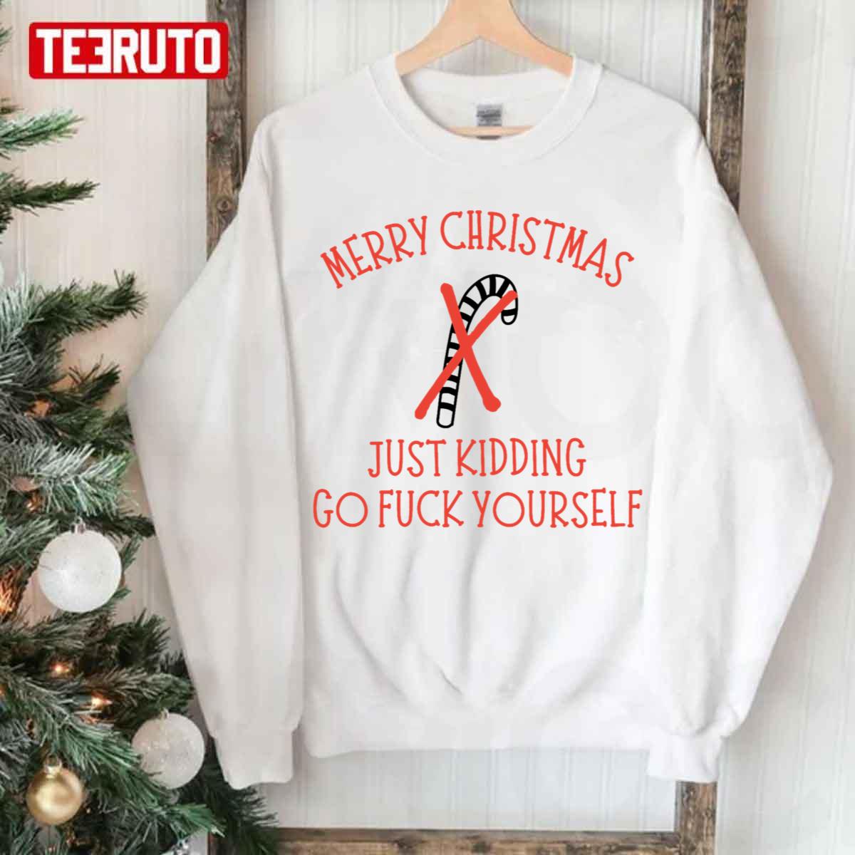 Humor Rude Offensive Merry Christmas Just Kidding Sweatshirt