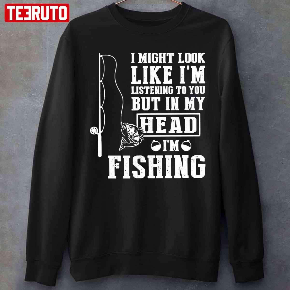 Product detail for I Might Look Like I'm Listening To But I'm Fishing Unisex Hoodie: