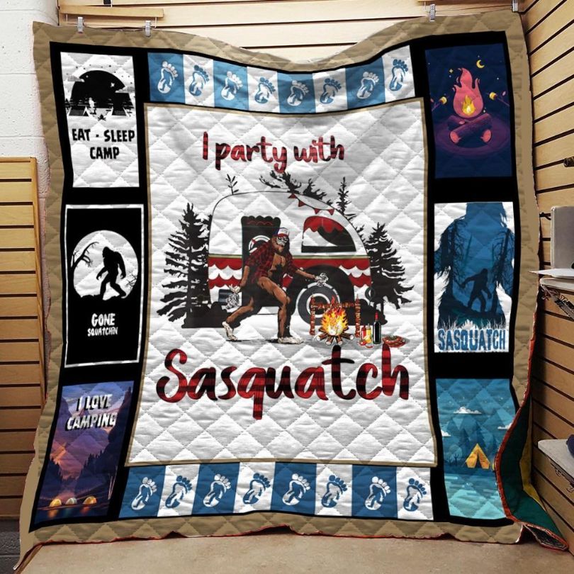 I Party With Sasquatch Bigfoot Quilt Blanket Th1909 DUP