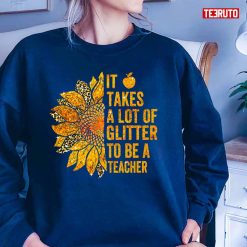 Product detail for It Takes A Lot Of Glitter To Be A Teacher Colorful Leopard Sunflower Unisex T-Shirt: