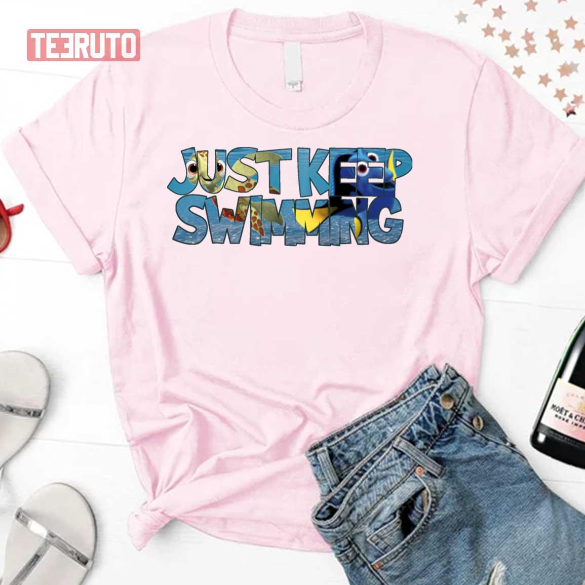 Just Keep Swimming Typographic Design Finding Nemo Unisex T-Shirt