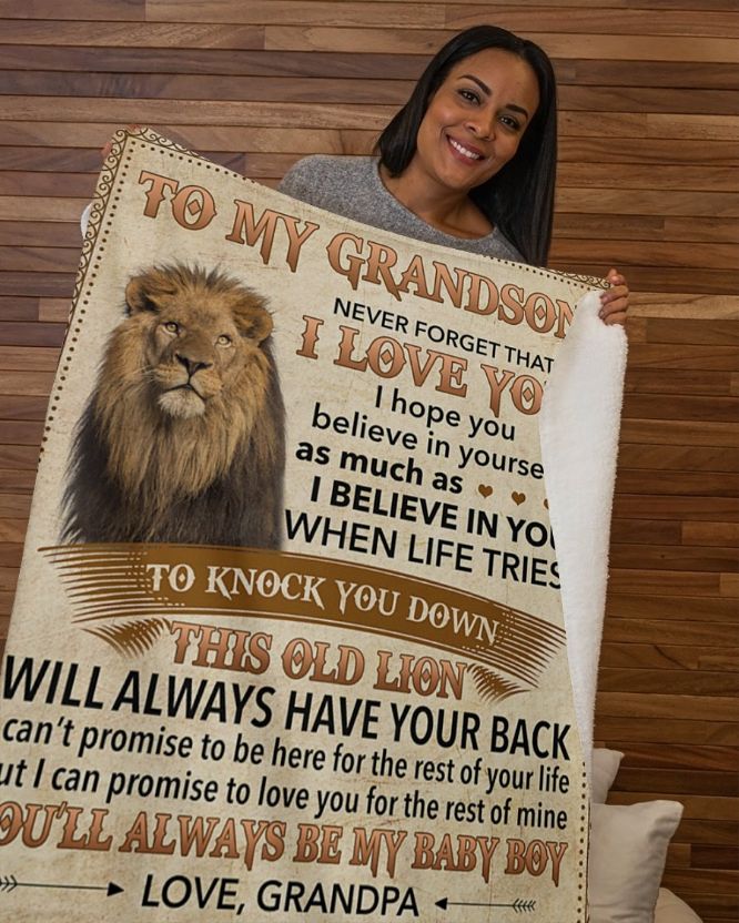 Blanket product: Lion To My Grandson Never Forget I Love U Grandpa Fleece Blanket Quilt Blanket For Grandson , related’s themes is .