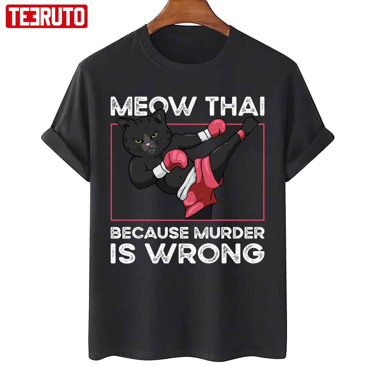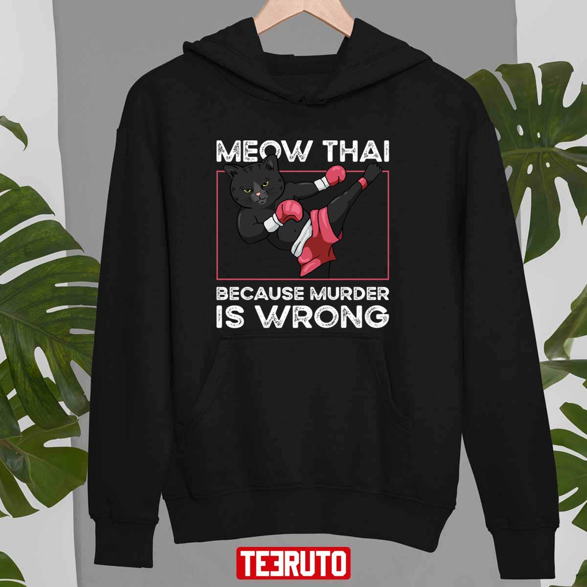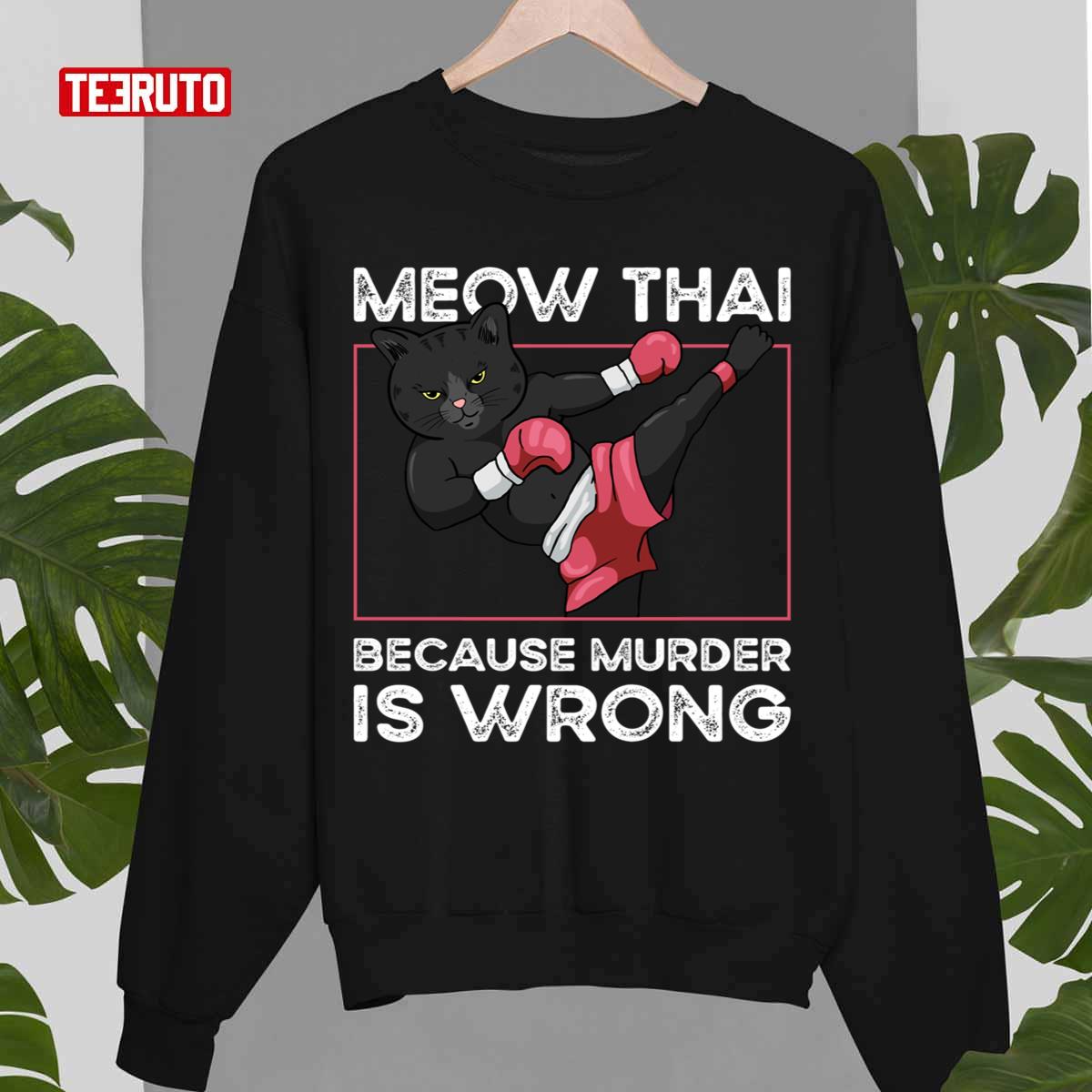 Product detail for Meow Thai Because Murder Is Wrong Cat Muay Thai Unisex Sweatshirt: