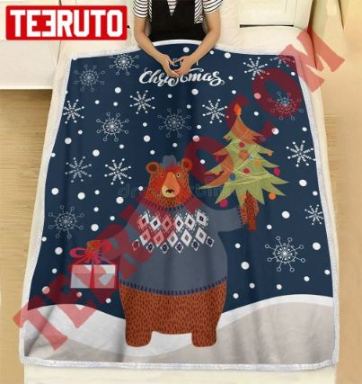 Blanket product: Merry Christmas Vector Doodle Bear On A Blue Fleece Blanket , related’s themes is .