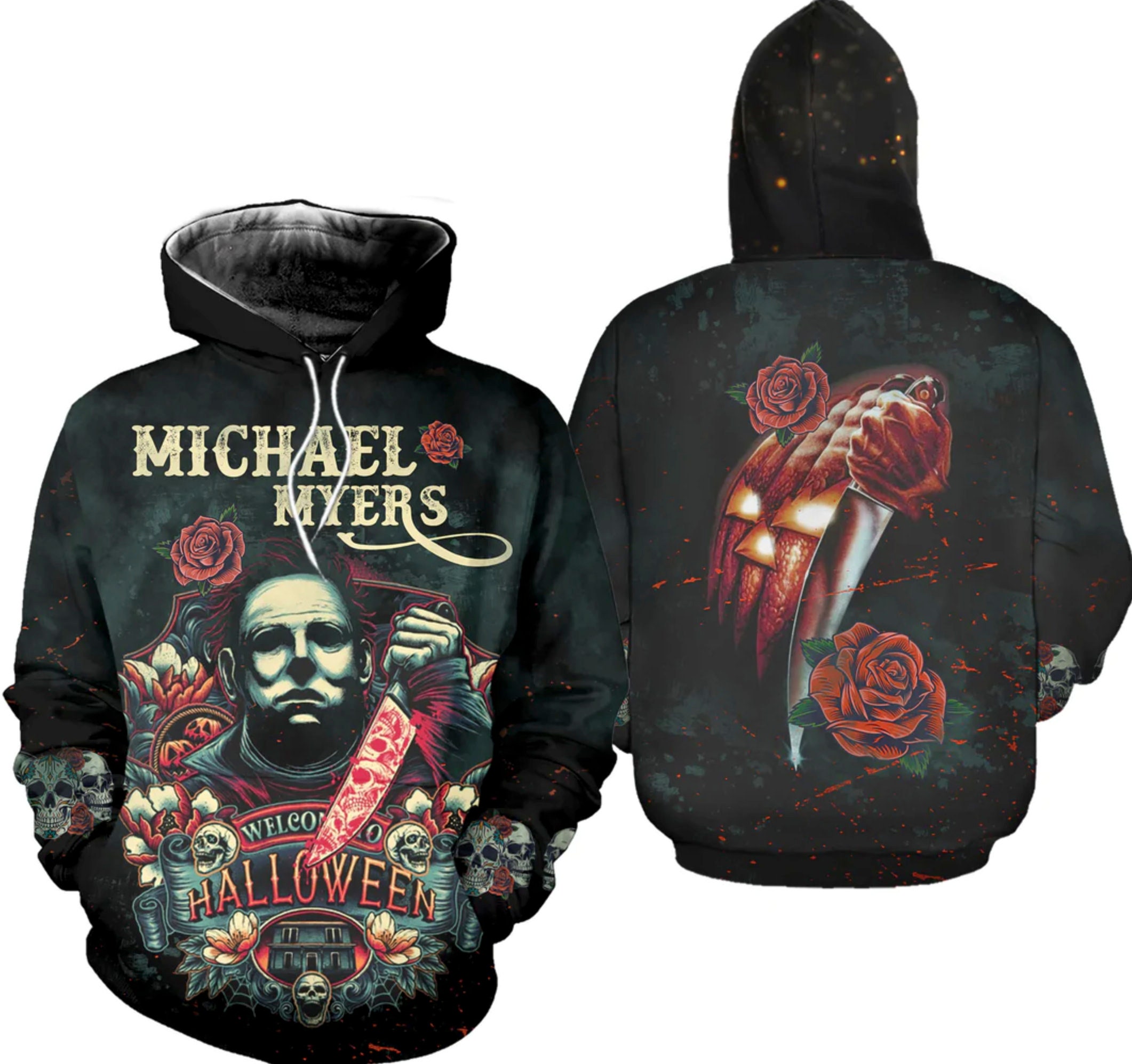 Michael Myers And Roses Halloween Horror Movie All Over Printed Hoodie