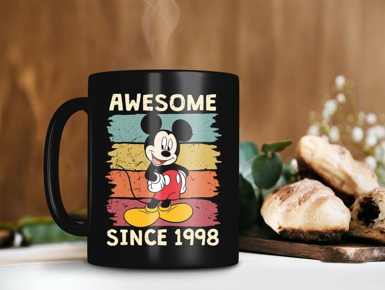 Mickey Team Awesome Since 1998 Mug Customized Year Of Birth Mug Personalized Retro Vintage Disney Premium Sublime Ceramic Coffee Mug Black