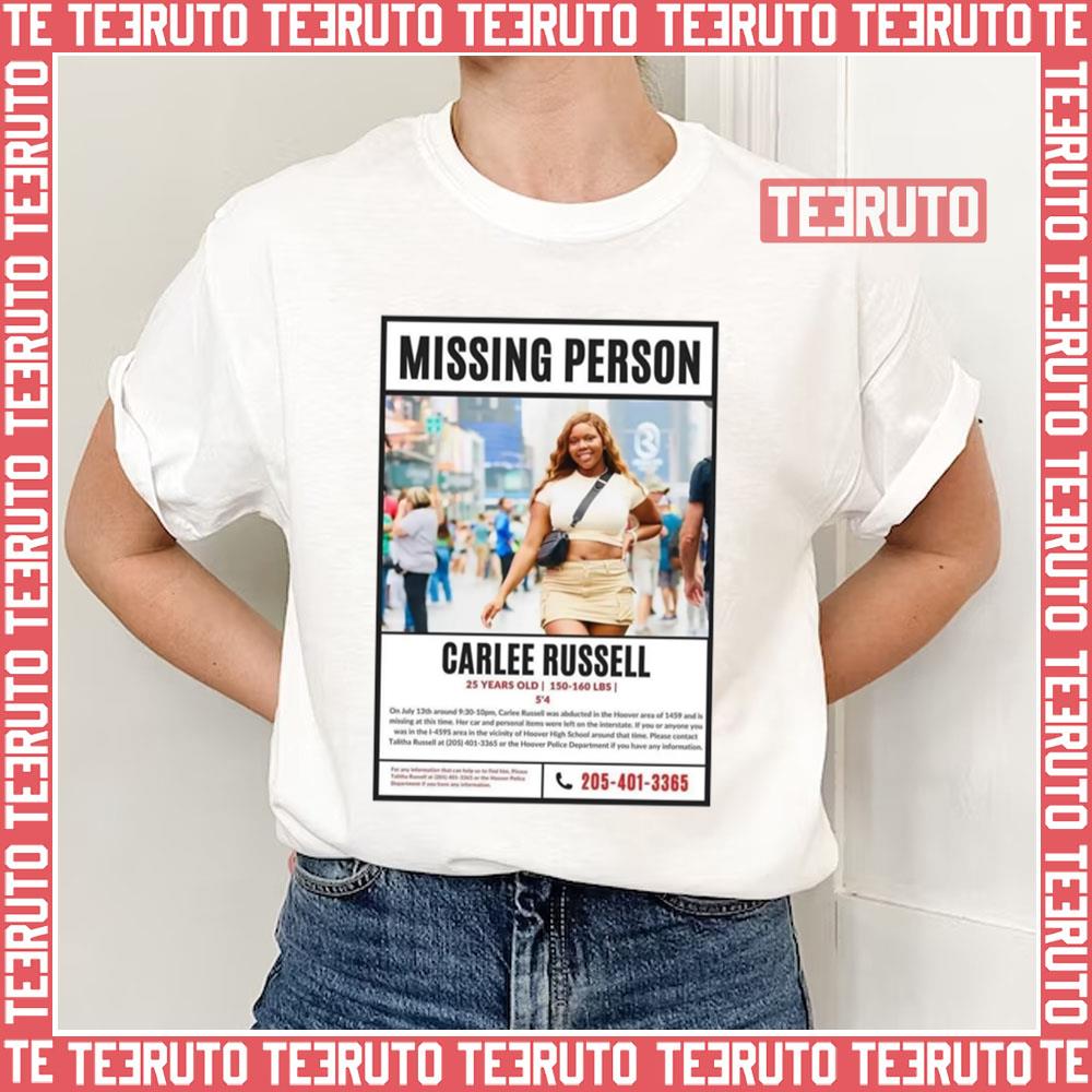 Product Missing Person Carlee Russell Unisex T-Shirt will shipped within 1 to 3 days after payment received.
