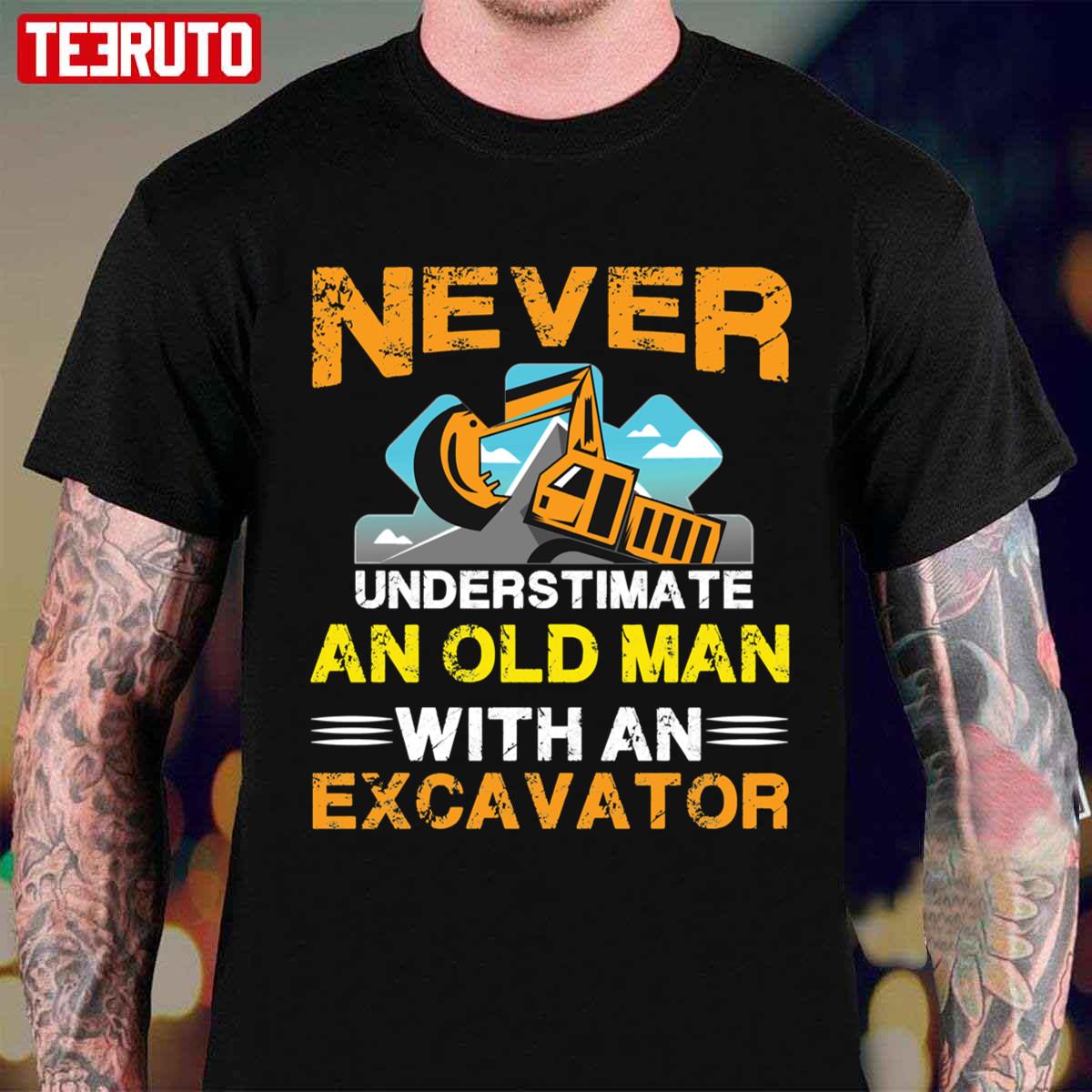 Never Underestimate An Old Man With An Excavator Unisex T-Shirt Care Instructions