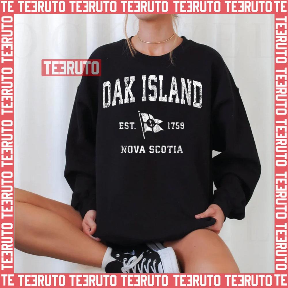 Oak Island Canada Vintage Nautical Boat Anchor Flag Sports Unisex T-Shirt Care Instructions