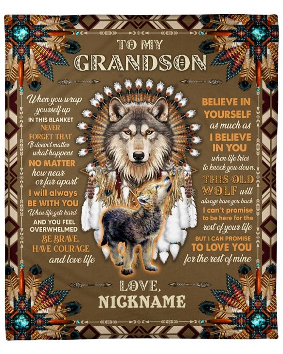 Blanket product: Personalized Wolf To My Grandson Native Blanket For Wolf Lover Friend Family , related’s themes is .