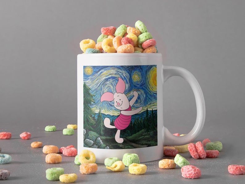 ABOUT OUR MUGS ON THIS PRODUCT: Piglet In Canvas Mug Starry Night Mug Van Gogh Mug Pooh Lover Gift Disney Premium Sublime Ceramic Coffee Mug White