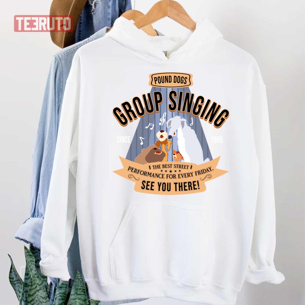 Pound Dogs Group Singing Lady And The Tramp Unisex Hoodie