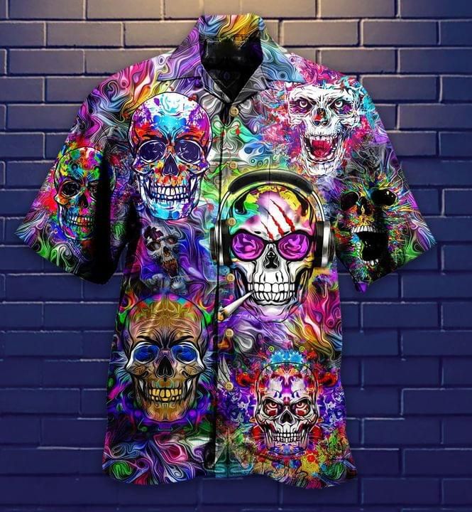Product detail for Skull Hippie Print Hawaiian Shirt: