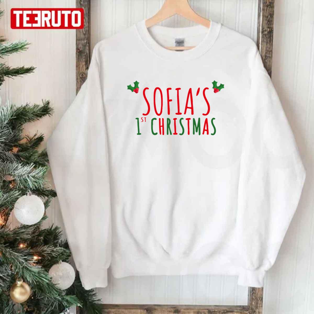 Product detail for Sofia's First Christmas Personalised Name Unisex Sweatshirt: