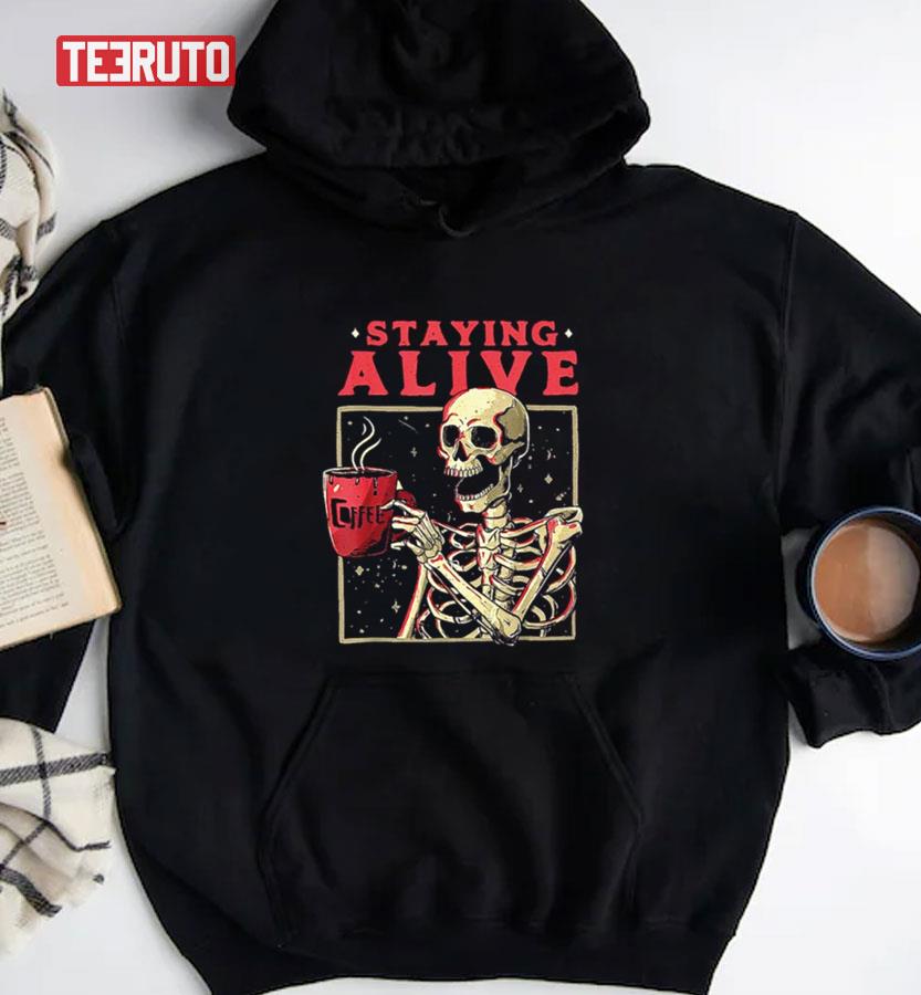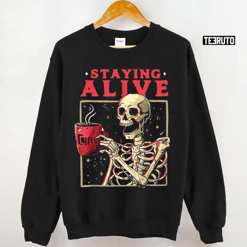 Staying Alive Skeleton Drink Coffee Halloween Unisex T-Shirt