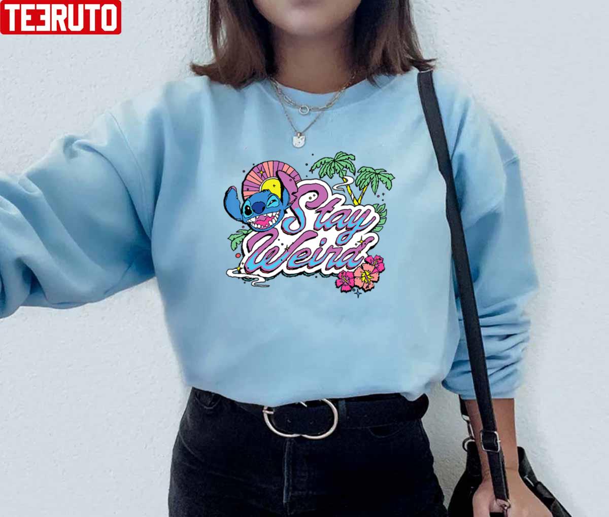 Stitch Stay Weird Colorful Art Unisex Hoodie Care Instructions