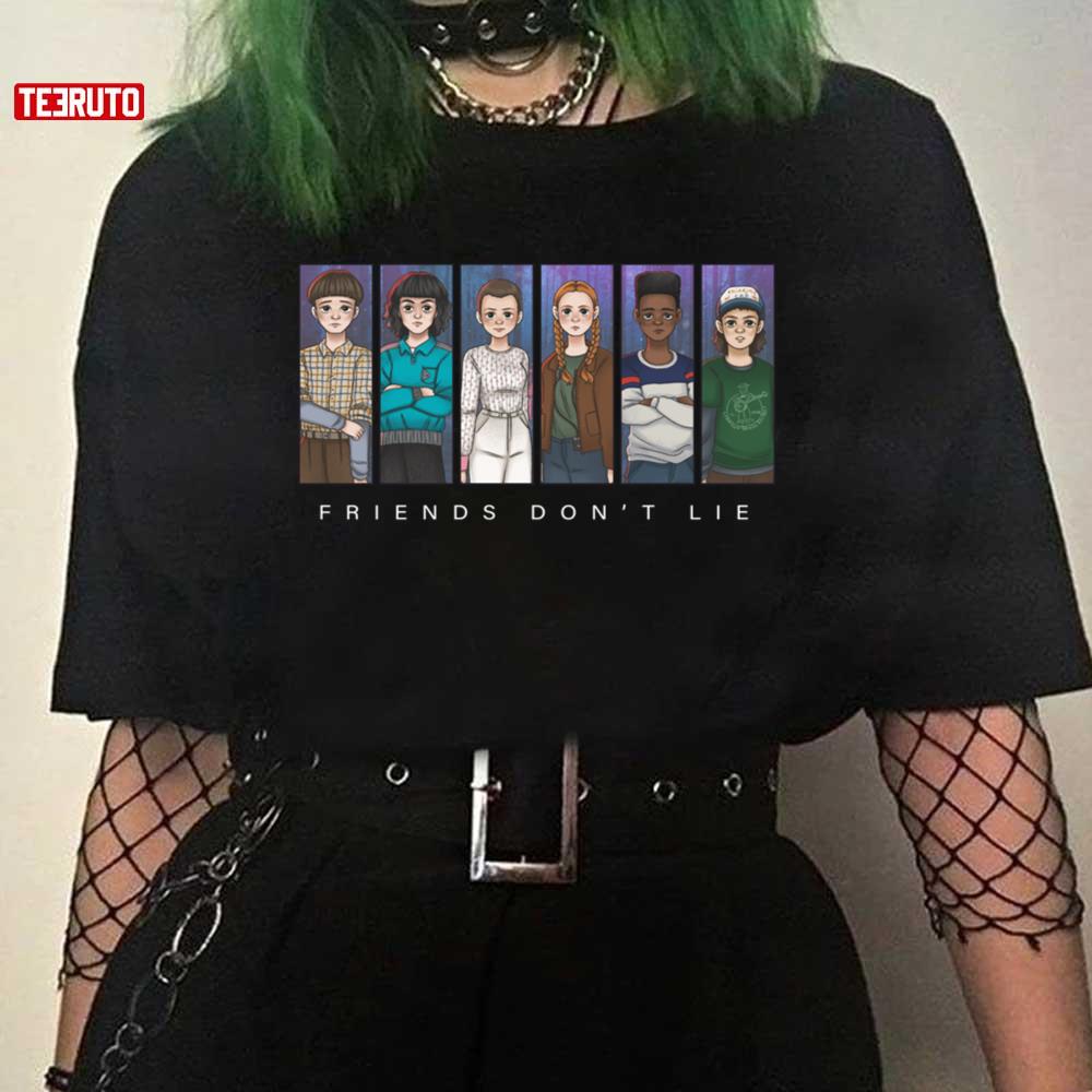 Product detail for Stranger Things Crew Will Mike Eleven Max Lucas And Dustin Friends Don't Lie Unisex T-Shirt: