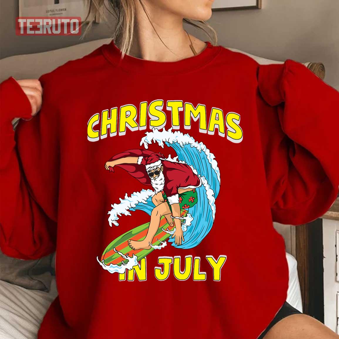 Surfing Summer Santa Christmas In July Vacation Unisex Sweatshirt