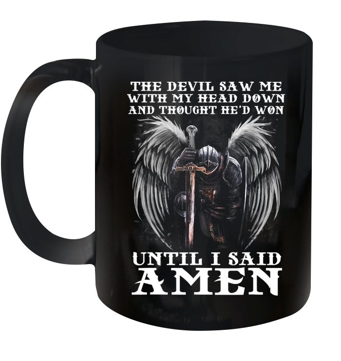 ABOUT OUR MUGS ON THIS PRODUCT: The Devil Saw Me With My Head Down Thought He'd Won Until I Said Amen Premium Sublime Ceramic Coffee Mug Black